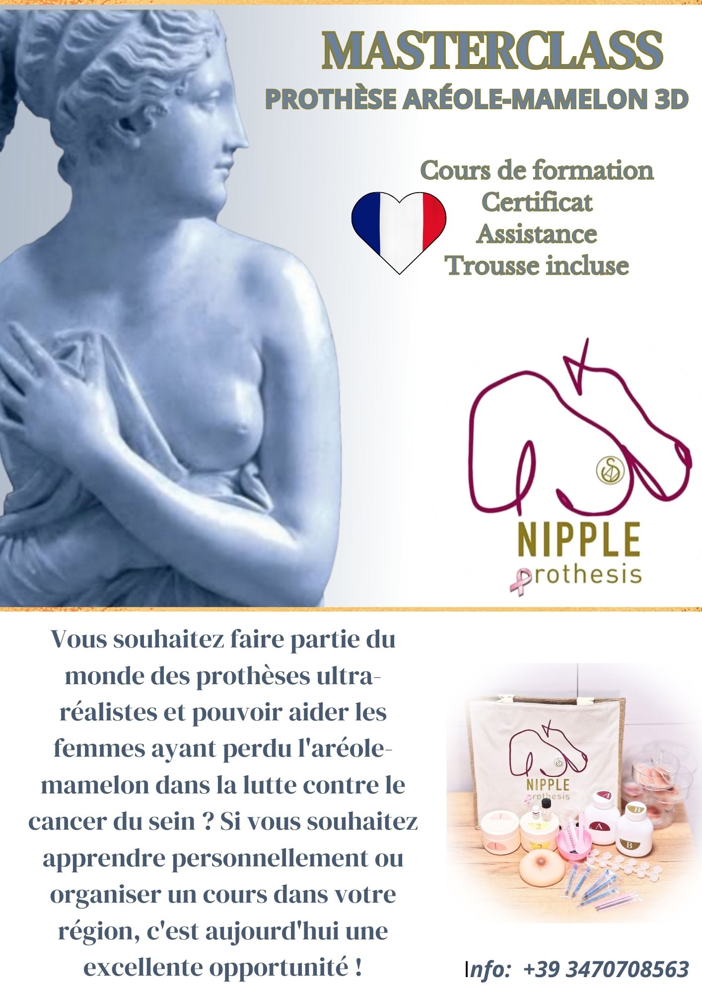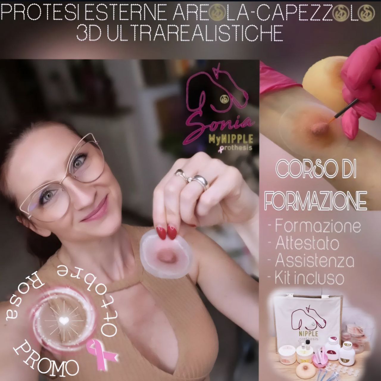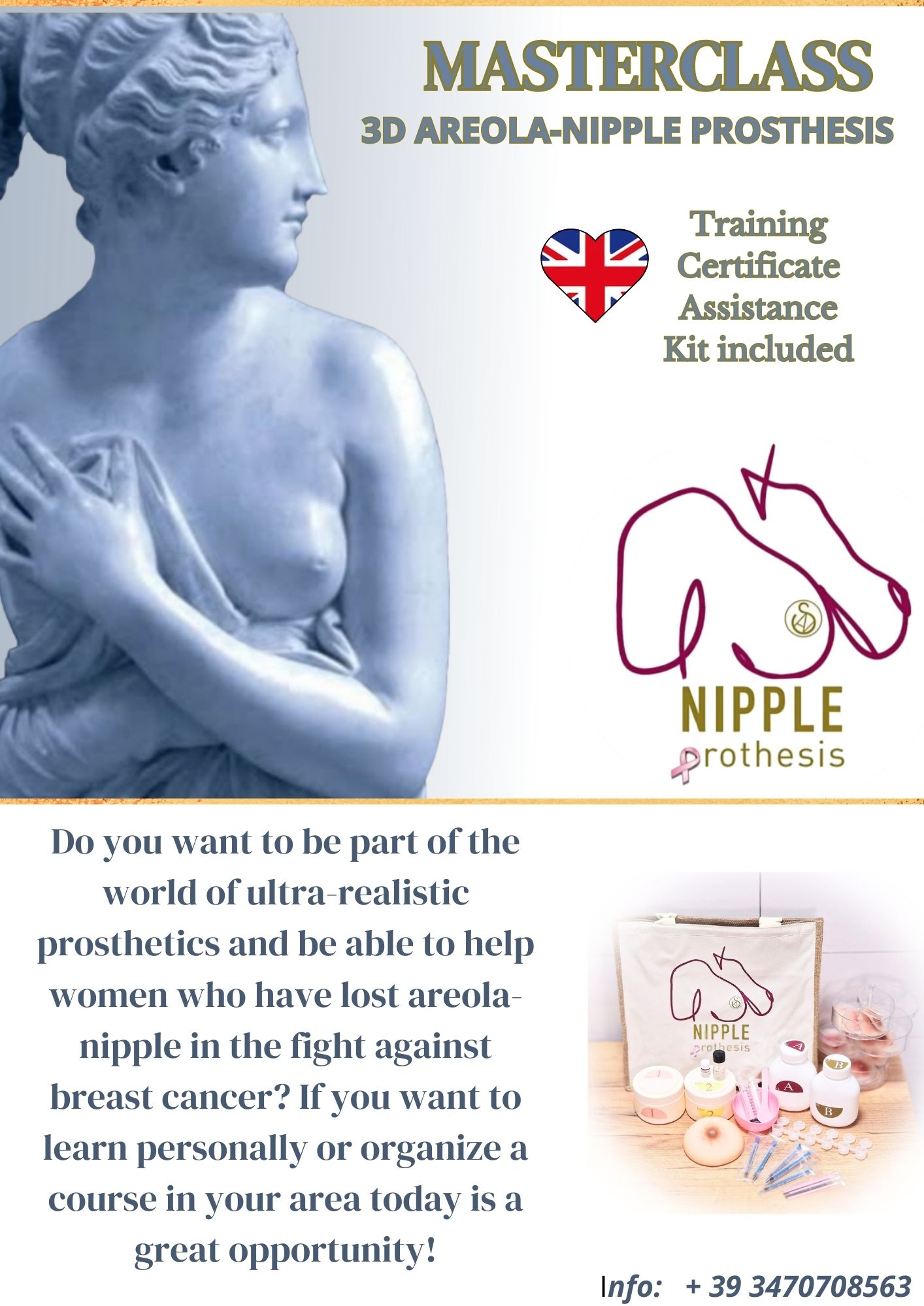 In Italy, the sector of realistic 3D prosthetics has been making headlines for a few years now. I would like to point out that it is not a new development, nor a recent invention (during my very first studies at the Academy, precisely 30 years ago, realistic aesthetic prosthetics were already being created during the theatrical makeup and special effects lessons). Over the years, the materials and techniques of execution have obviously improved and, personally, after resuming my studies in this regard (both in the aesthetic and artistic branches) I was able to study a technique that stands out for its ULTRA-REALISTIC effect both to the sight and to the touch. MyNipple prosthetics faithfully reproduce the grain of the skin and its shades of color. Making the MyNipple protocol available to anyone who wants to learn how to create 3D nipple-areola prosthetics to help women who have lost this delicate part of their body in the fight against breast cancer (but not only) is a source of great pride for me. It is a real protocol, with immediate results, without too many "frills" or big scenography. It is the goal that counts, giving back to these women part of what the disease has taken away from them. And I am not just talking physically but (after several years of meetings, applications, tears of joy, feedback messages, ...) I can definitely say that finding yourself in front of the mirror, as well as in everyday life and in that of a couple, dramatically increases psychophysical energy, increasing self-confidence and accelerating the healing process because we know that inner strength has a positive effect on recovery after the disease. If you want to personally learn the MyNipple method or want to organize a Masterclass in your area, write me a message, I will be happy to give you all the information you want.